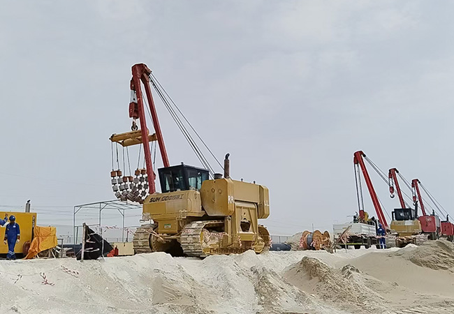 阿聯(lián)酋地區(qū)氣候炎熱,夏季氣溫常高達(dá)50攝氏度以上,加之沙塵環(huán)境復(fù)雜,對(duì)工程設(shè)備的性能提出了高要求。中蘇海工履帶吊管機(jī)以其強(qiáng)大的動(dòng)力系統(tǒng)、高效的散熱設(shè)計(jì)以及堅(jiān)固的結(jié)構(gòu),完美適應(yīng)了這些挑戰(zhàn),確保了施工的高效性和連續(xù)性。設(shè)備在高溫環(huán)境下運(yùn)行穩(wěn)定,操作靈活,極大地提升了施工效率,贏(yíng)得了現(xiàn)場(chǎng)施工人員的一致好評(píng)。